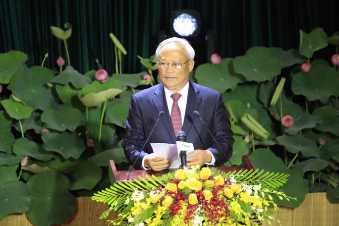 Ông Nguyễn Thiện Nhân, Ủy viên Bộ Chính trị, Trưởng đoàn Đại biểu Quốc hội TP HCM, theo dõi và chỉ đạo Đảng bộ TP HCM phát biểu tại buổi lễ